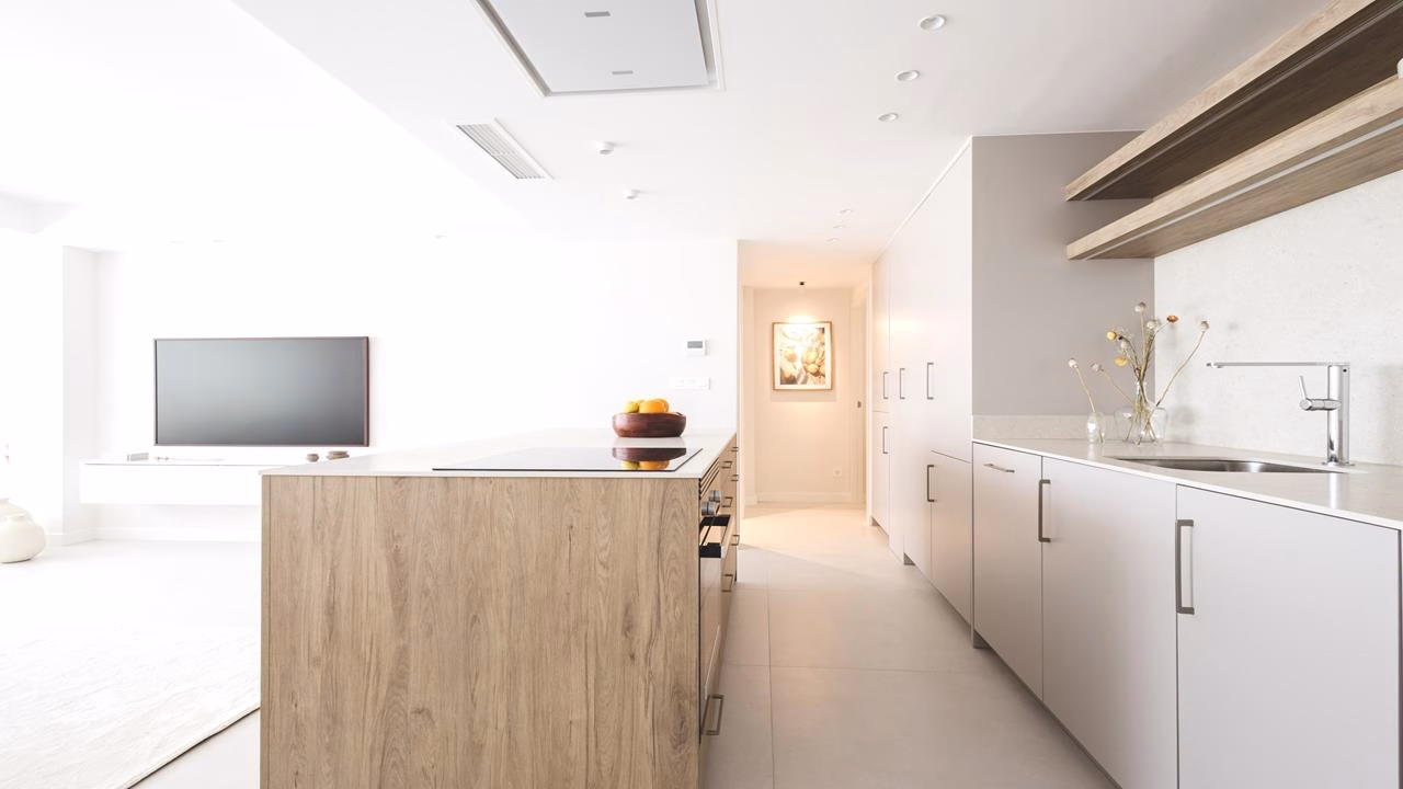 Open-concept kitchen, equipped with high-end appliances and a central bar: a space where gastronomy becomes art.