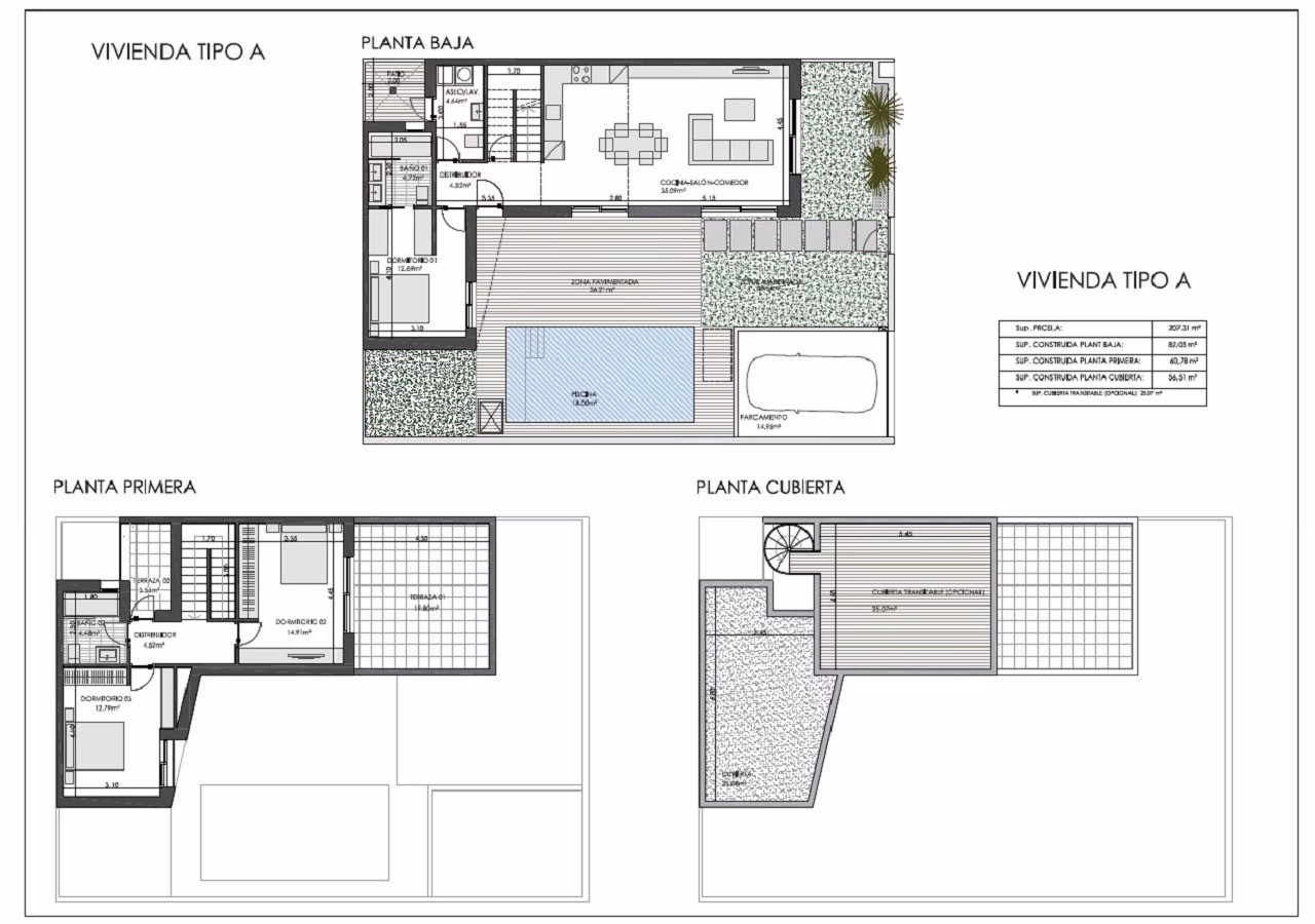 The properties feature 3 bedrooms and 2 bathrooms, with the option to add a swimming Pool and Solarium. In the villas with a basement, we also offer different options to further expand your home. Above all, you will be able to enjoy the wonderful views of the Vega Baja del Segura.