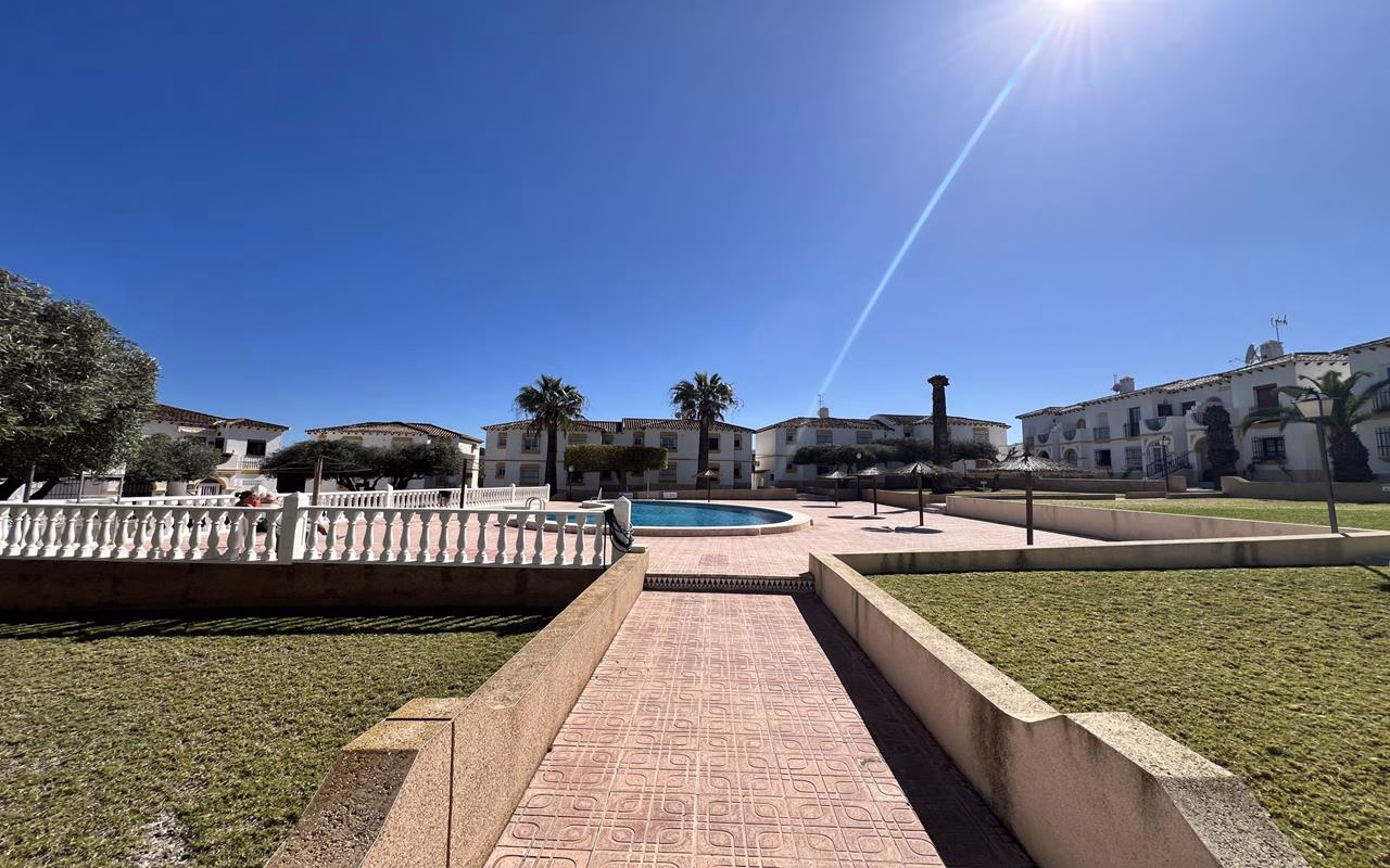 – White Villas in Spain presents this Sunny Ground floor apartment for sale in a gated Mediterranean style complex with a swimming Pool and common green areas.